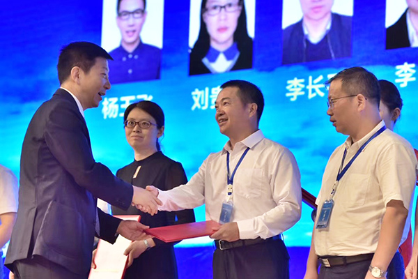 2019年8月23日至25日,中國環境科學學會2019年科學技術年會在陜西賓館隆重召開,會議主題為“環保科技創新 助力污染防治攻堅戰”。本屆年會的第四十分會場“非電領域大氣污染物超低排放技術”研討會由西礦環保承辦。國家生態環境部黃潤秋副部長、陜西省政府副省長趙剛等領導出席大會開幕式,并為獲得“2018年度環境保護科學技術獎”的獲獎單位和個人進行了頒獎,西礦環保的KJ2018-2-02“轉爐煤氣HLG干法深度凈化與煙塵原位回用集成技術與應用”獲得二等獎,陳貴福總經理上臺領獎。