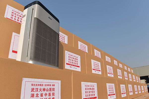 這是新冠肺炎疫情發(fā)生后,繼龍凈環(huán)保大股東陽光控股向武漢捐贈2000萬元后,龍凈再次馳援武漢500套自主生產(chǎn)的“龍凈”牌空氣凈化器,價值350萬元,助力武漢火神山醫(yī)院、湖北省中醫(yī)院、華潤武鋼醫(yī)院等改善室內(nèi)空氣環(huán)境。