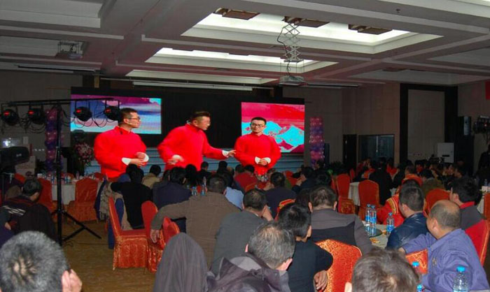 1月23日,西安涇渭國際酒店紅燈高掛,宴會廳擺滿了可愛的雞仔,連門口樹上都掛滿了紅色的小燈籠,到處洋溢著節日的氣息。今天,公司經理層、各事業部領導以及工程公司班組長以上員工相聚于此喜迎2017的到來。大伙歡聚一堂共進晚餐,其樂融融。期間,閆小龍和譚新勝分別獻唱了助興歌曲《敢問路在何方》和《歡聚一堂》,陳總也在千呼萬喚中激情演唱歌曲《等待》;在令大家其樂無窮的“指手畫腳猜成語”游戲環節中,陳立芹副總經理和楊更生副總經理模仿的成語“虎頭蛇尾”、生產系統員工模仿的各種動物名詞讓現場的歡呼聲此起彼伏;最讓大家激動的就是幸運大抽獎環節,當幸運之手在抽獎箱里撥動時,大伙的心也興奮的撲通、撲通直跳,心里默念“是我、是我”,隨著幸運大獎花落誰家逐漸揭曉,現場氣氛達到頂點,晚宴不僅給大家帶來了歡樂,也讓大伙的心更加貼近。