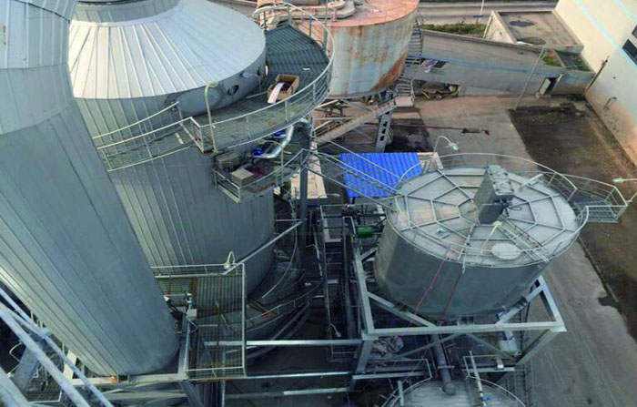咸陽灃河熱電煙氣治理島一期和二期脫硫脫硝除塵改造項目,原本是布袋除塵器,除塵效果不好,本次改造為電袋復合除塵器,并新增加了脫硫、脫硝裝置。設計要求出口排放氮100mg/Nm3,硫50mg/Nm3,塵20mg/Nm3。其中一期3#4#爐脫硫塔采用常規技術,二期1#2#爐改用我公司最新的SK505雙氣旋高效脫硫+多級氣旋除塵除霧技術,二爐一塔。