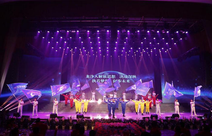 音樂舞蹈快板《千秋基業》新穎獨特,將說唱、舞蹈和快板完美結合,令人耳目一新。不僅展現出龍凈人果敢、堅定的發展信念,而且表達了龍凈人治理霧霾的決心和魄力,讓人滿懷激情。最后,由西礦副總陳立芹領銜的歌舞串燒《超越夢想》將晚會引入另一個高潮,節奏明快、激情涌動,引得滿堂喝彩。